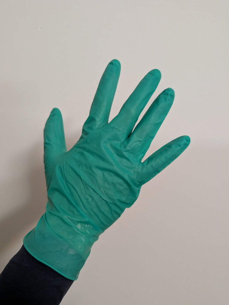 • Mănuși de cauciuc după aplicație