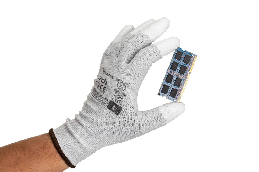 Mănușa respectă standardele europene ESD și poate fi utilizată în medii ATEX. Învelișul alb din PU de pe vârful degetelor oferă o aderență excelentă și mișcări precise, ceea ce o face o alegere ideală pentru sarcini de asamblare mecanică și electronică fină. Toate informațiile importante sunt clar vizibile pe partea superioară a mănușii: mărimea, standardul EN, clasificarea EIP - identificarea este rapidă și ușoară.