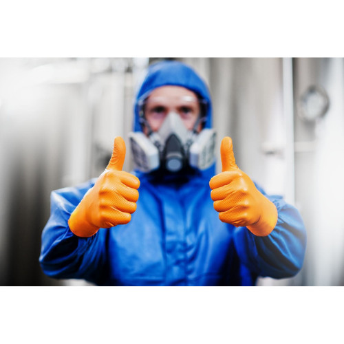 Mănușile de cauciuc **Mercator GoGrip, din nitril fără pudră, cu textură diamantată portocalie, oferă protecție profesională și confort utilizatorilor. Materialul lor de calitate premium și textura unică ne permit să lucrăm eficient și cu cea mai mare siguranță posibilă, în orice mediu industrial. Datorită structurii sale speciale, previne transpirația mâinilor, oferind astfel o calitate premium din toate punctele de vedere!